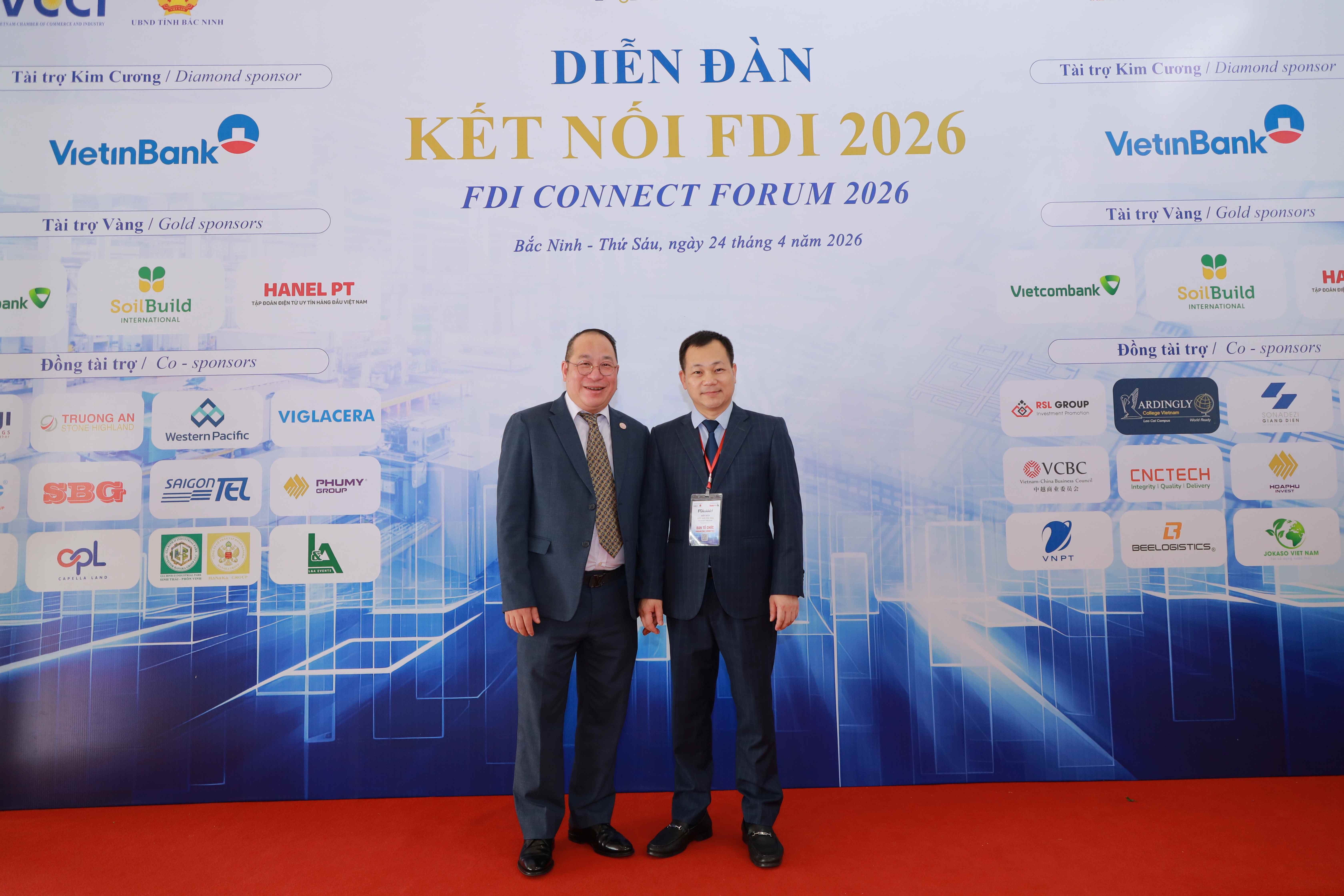 Đoàn Hội đồng Doanh nghiệp Việt-Trung (VCBC) do Chủ tịch Steve Bùi dẫn đầu đã tham dự “FDI Connect 2026” do Liên đoàn Thương mại và Công nghiệp Việt Nam (VCCI) phối hợp với Ủy ban Nhân dân tỉnh Bắc Ninh tổ chức diễn ra trong hai ngày 24-25/4/2026 tại Trung tâm Văn hóa Kinh Bắc, tỉnh Bắc Ninh. Với vai trò đơn vị đồng hành cùng Ban tổ chức, VCBC có sự tham gia đông đảo gồm đại diện chủ nhiệm của các ủy ban, VCBC Chi nhánh Hải Phòng và cộng đồng doanh nghiệp Việt Nam – Trung Quốc.