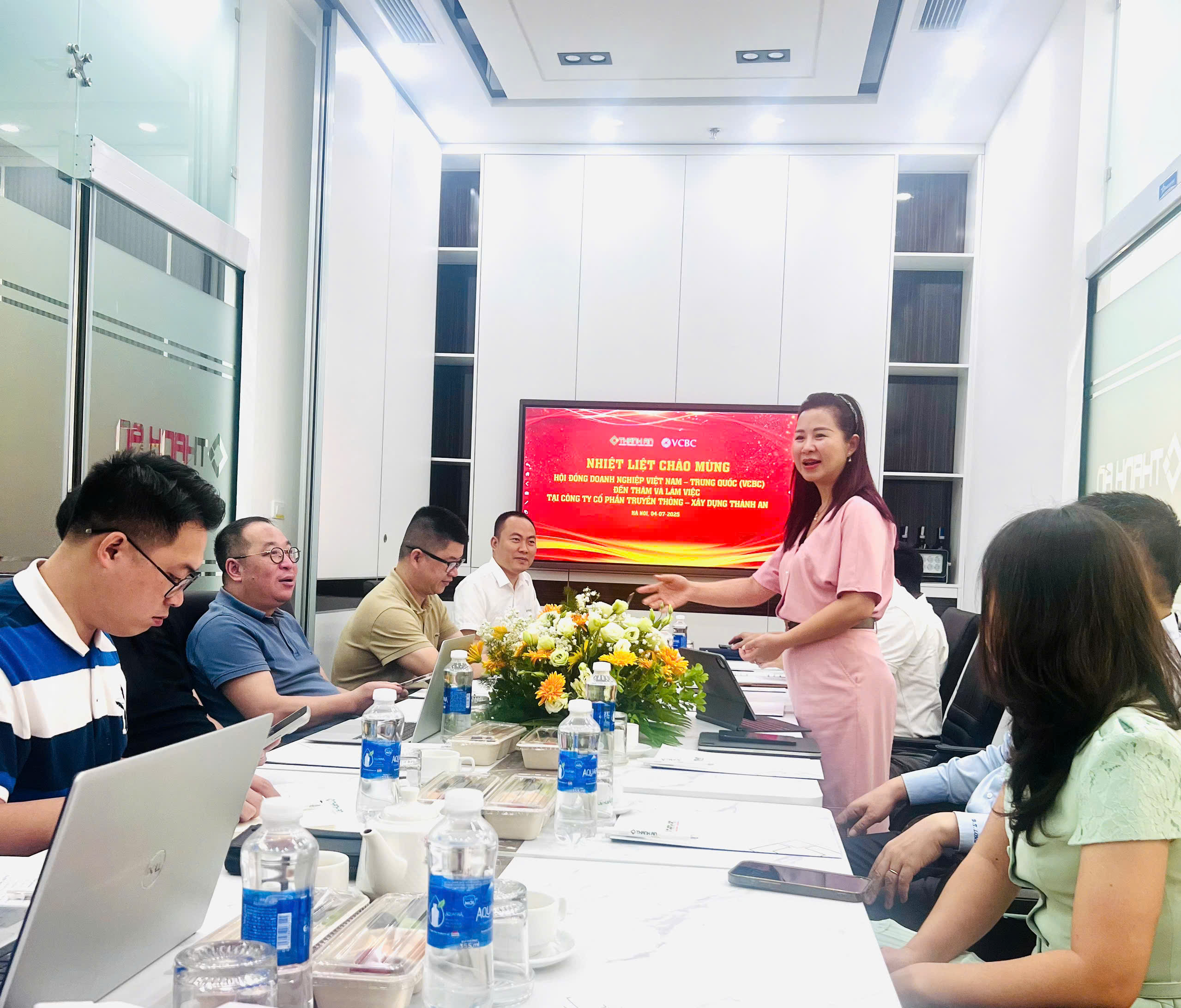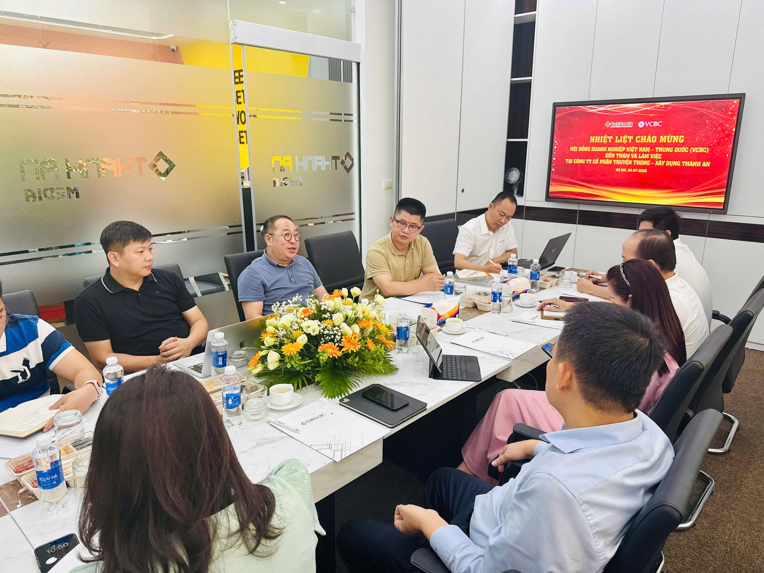 Hà Nội, ngày 04/07/2025 – Trong khuôn khổ lần đầu tiên tham gia với tư cách thành viên chính thức của Hội đồng Doanh nghiệp Việt Nam – Trung Quốc (VCBC), Công ty Cổ phần Truyền thông – Xây dựng Thành An đã có buổi làm việc quan trọng với lãnh đạo VCBC tại trụ sở Thành An (Hà Nội).