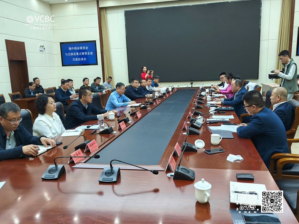 Ngày 24/04/2025, Hội đồng Doanh nghiệp Việt Nam - Trung Quốc (VCBC) đã có buổi làm việc chính thức với chính quyền huyện Vô Cực (Wuji), tỉnh Hà Bắc, Trung Quốc. Sự kiện là một trong những hoạt động đối ngoại trọng điểm trong năm, nhằm tìm kiếm cơ hội hợp tác, kết nối doanh nghiệp và khai thác thế mạnh trong các ngành sản xuất truyền thống của huyện.